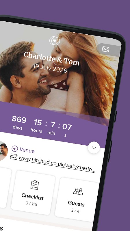 ازدواج میکنید؟ برنامهریزی عروسی با برنامه رایگان برنامهریز عروسی Hitched نمیتوانست آسانتر از این باشد! چه عروس باشید و چه داماد، همین حالا آن را دانلود کنید تا تمام جزئیات عروسی خود را در حال حرکت برنامهریزی کنید. Hitched یک مقصد پیشرو در برنامهریزی عروسی در بریتانیا است که در آن میتوانید هزاران مکان و تأمینکننده عروسی را مرور کنید، ایدهها و توصیههای الهامبخش را کشف کنید و با ابزارهای رایگان برنامهریزی عروسی ما، لیست کارها، بودجه، لیست مهمانان، شمارش معکوس عروسی و موارد دیگر را پیگیری کنید. هر آنچه را که برای برنامهریزی عروسی خود از طریق تلفن خود نیاز دارید، با موارد زیر کشف کنید: