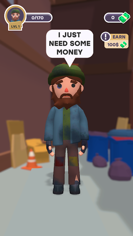 Complete all levels and turn a homeless man into a rich man!