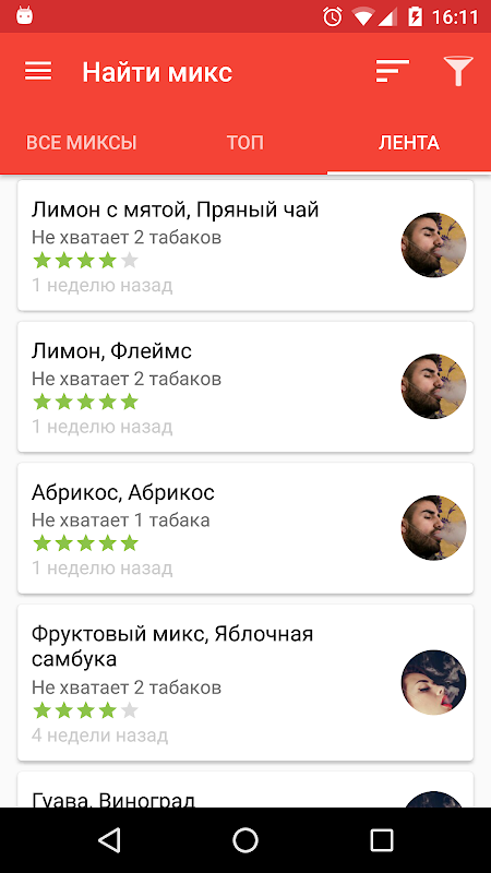 Также, в приложении есть фильтр по типу микса, который подходит твоему настроению в данный момент. Можно легко найти только свежие кальяны или сладкие на алкоголе, или кислые на фруктовой чаше! Вариантов множество. Кстати, если микс понравился, его можно добавить в избранное, чтобы потом легко найти его и удивить друзей отличным кальяном.