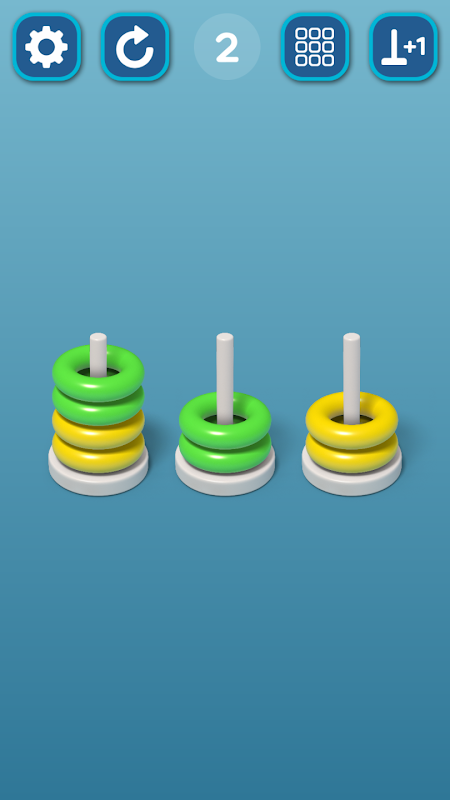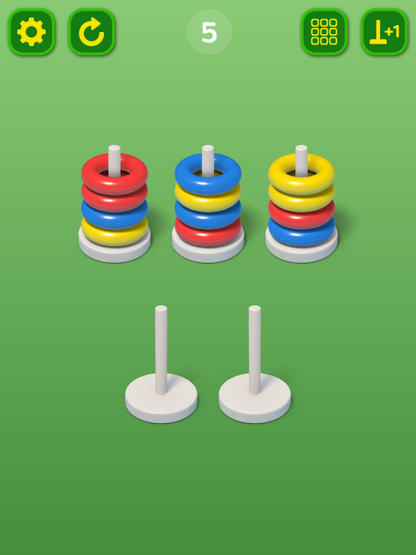 برای پایان دادن به مرحله، هر حلقه را از یک پشته به پشته دیگر فشار دهید.