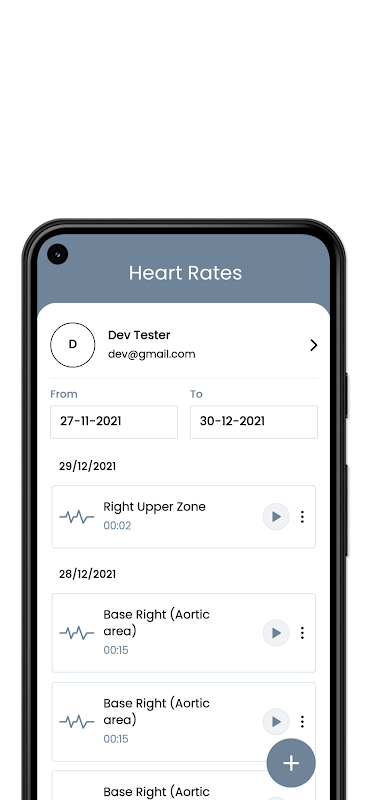 محتوای برنامه ضبط، پخش، و به اشتراک گذاری صدای بدن بیمار با Hops Stetho از طریق بلوتوث فعال و دستگاه پاک شده CE