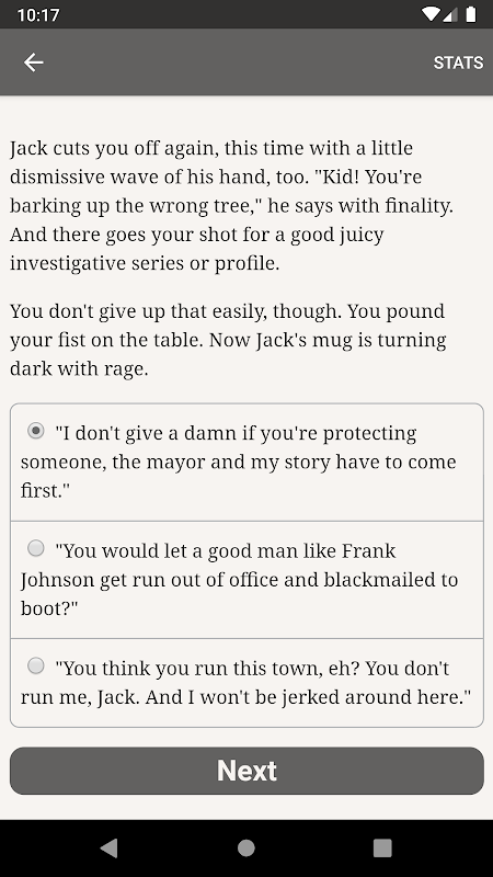 نویسندگان درست مثل شما این بازی ها را با استفاده از ChoiceScript، یک زبان برنامه نویسی ساده برای نوشتن رمان های چند گزینی تعاملی توسعه داده اند. نوشتن بازی با ChoiceScript آسان و سرگرم کننده است، حتی برای نویسندگان بدون تجربه برنامه نویسی. بیشتر در http://hostedgames.org بیشتر بدانید
