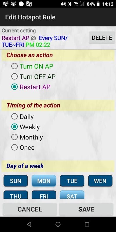 HotSpot Tethering میتواند نقاط اتصال Wi-Fi را مدیریت کند و چندین نوع قانون برای روشن، خاموش کردن یا راهاندازی مجدد نقطه اتصال تلفن همراه به صورت خودکار ارائه میکند، حتی اگر تلفن همراه در حالت قفل یا دور از شما باشد.