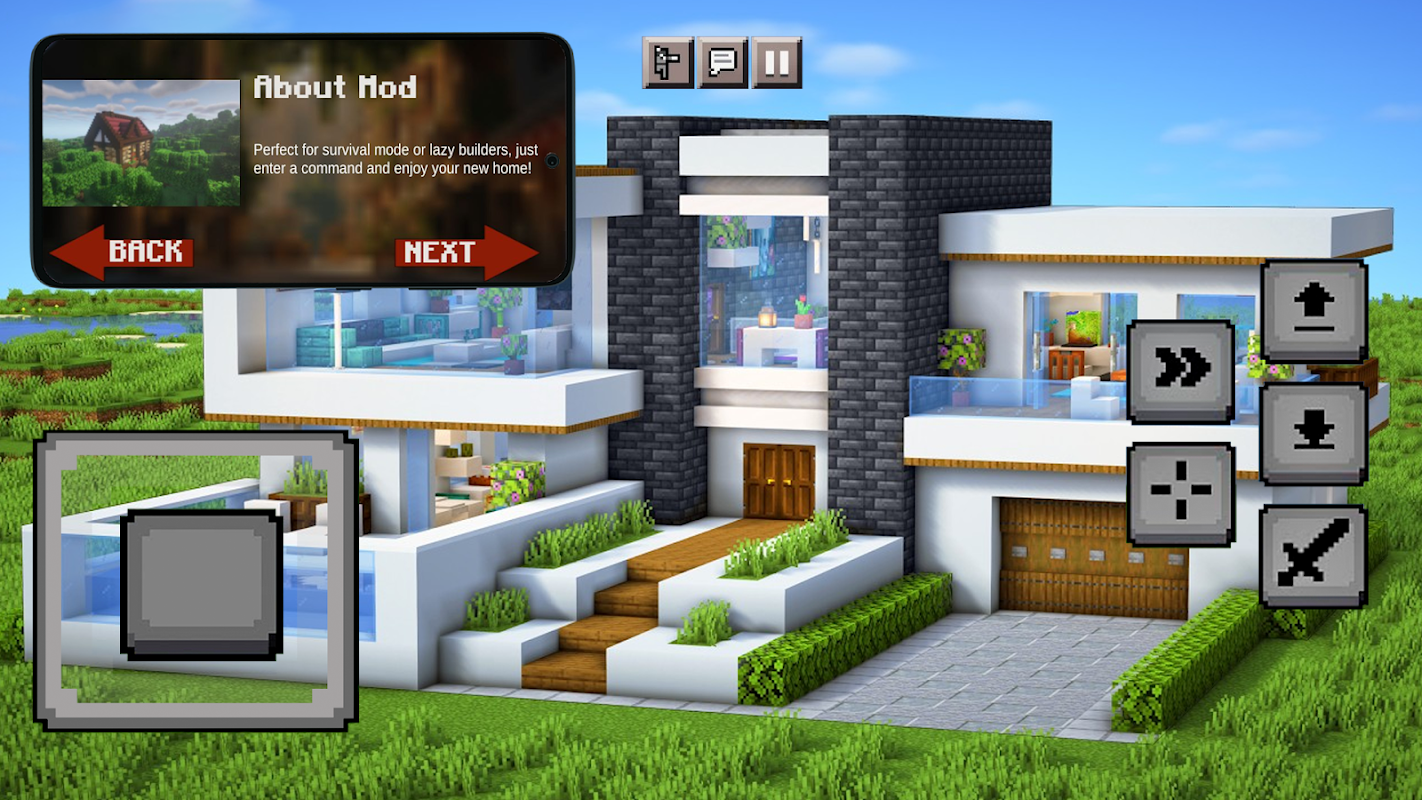 House Mods for Minecraft Pocket Edition افزونه هایی را به بازی اضافه می کند که با آن می توانید به سرعت و با یک کلیک خانه های خانه مدرن، قلعه ها و حتی خانه های مینیاتوری بسازید، همچنین در برنامه نقشه های آماده با ساختمان های جالب و پوسته های منحصر به فرد را پیدا خواهید کرد که برای همه مناسب است.
