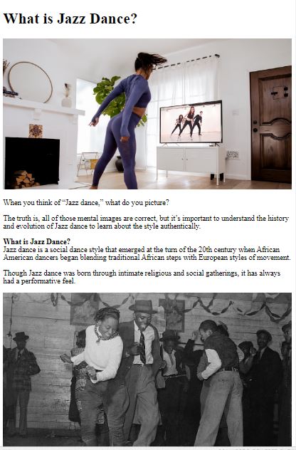 آزادی هنری: رقص جاز آزادی هنری و فردیت را جشن می گیرد و رقصندگان را تشویق می کند تا سبک و صدای منحصر به فرد خود را کشف کنند. برای انتقال بیان شخصی و تفسیر خود از موسیقی، کیفیتهای حرکتی، پویایی و ژستهای مختلف را آزمایش کنید.