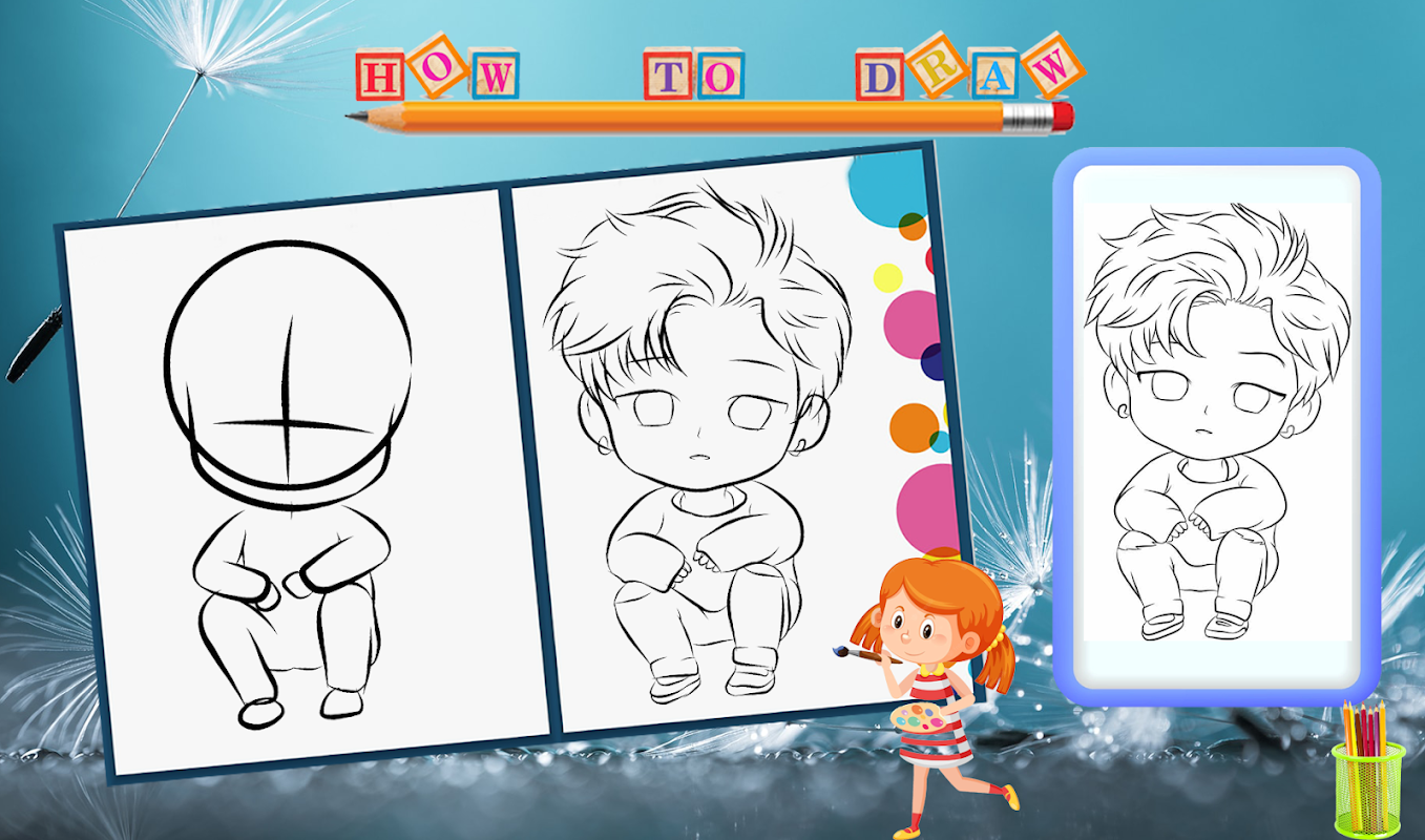 بدون هیچ مهارت و تردید خاصی شروع به طراحی کنید و با استفاده از برنامه How to Draw K-Pop Singers BTS Characters خلاق باشید.