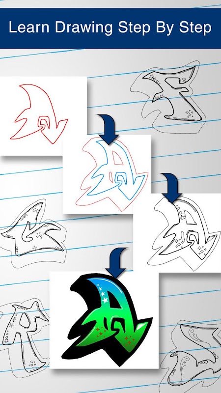 How to Draw Graffiti Letters is an app that teaches you how to Draw Graffiti Letters step by step educational application for the kids.