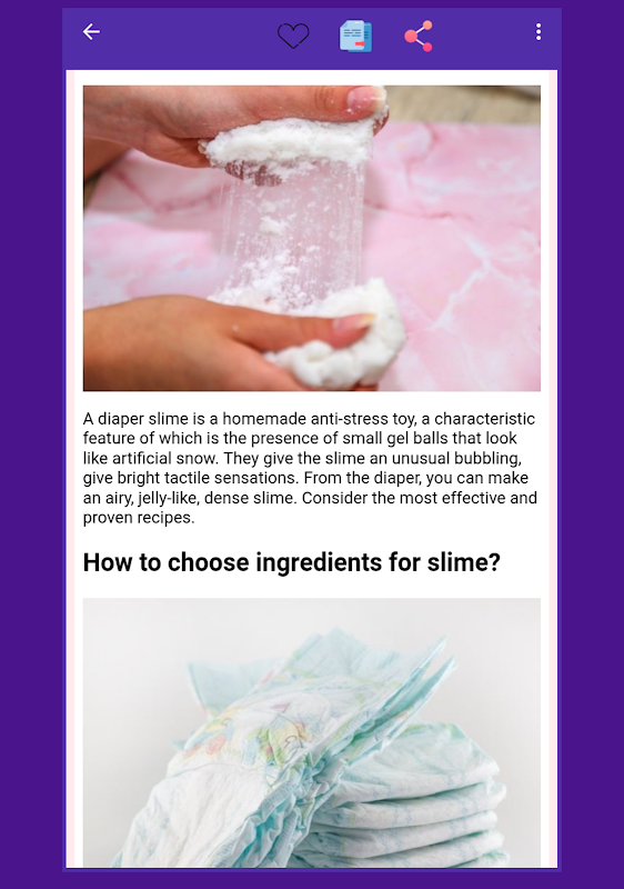 به دنبال بهترین راه برای تهیه اسلایم هستید؟ راهنمای "چگونه اسلایم درست کنیم" به شما در این امر کمک می کند! در برنامه ما، دستور العمل هایی در مورد نحوه ایجاد شکلات، سبز، طلایی و سایر انواع اسلایم از محصولات آرایشی و بهداشتی و خانگی پیدا خواهید کرد. یک فرآیند جالب ضد استرس و یک سرگرمی عالی برای کل خانواده. نیازی به اتصال به اینترنت ندارد. از ایجاد slimes درست روی گوشی خود لذت واقعی ببرید. "چگونه اسلایم بسازیم" را دانلود کنید و از ساخت اسلایم های متنوع و خلاقانه از مواد موجود لذت ببرید.