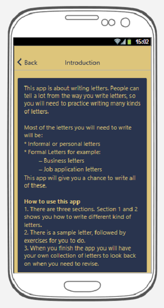 This app is about how to write a letter. People can tell a lot from the way you write letters, so you will need to practice writing many kinds of letters.