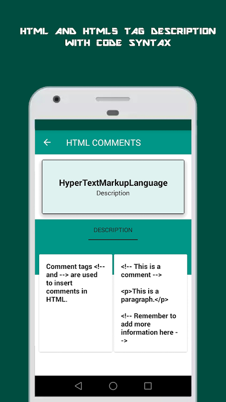 In this app you will learn how to build a website for free with html code syntax and brief description.