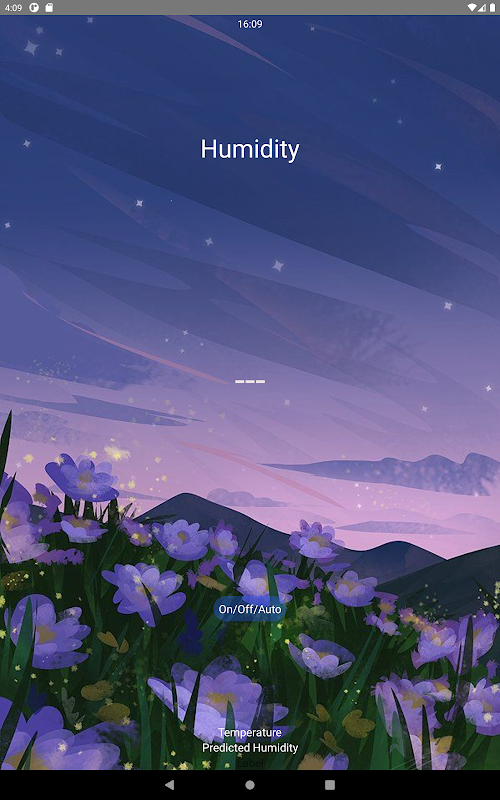 هنگامی که HC و رطوبت ساز کاربر به برق متصل می شوند ، کاربران می توانند با استفاده از برنامه ما ساخته شده با Thunkble ، آن را از راه دور کنترل کنند. صفحه اصلی برنامه میزان رطوبت در مرکز و دما را در پایین نشان می دهد. کاربران می توانند حالت ها را بین کنترل دستی و کنترل خودکار تغییر دهند.