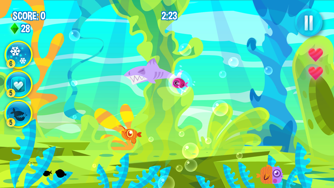 In the game you can find a lot of fish species: lionfish, nemo, shark, orca, whale, and so on! The game looks like a huge fish tank with coral reef and a lot of saltwater, colorful fishes. If you are interesting in biology games and real fishing, this game will be perfect for you. It’s also suitable for kids. Go fishing and become a hunter in the sea! Hunting has never been so funny. Make your fish happy & fed.