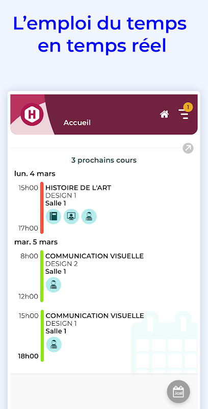 HYPERPLANNING اجازه می دهد تا دانش آموزان و معلمان برای دسترسی به داده های خود را در زمان واقعی و در یک محیط امن است. دانش آموزان همیشه می دانند که کجا هستند: کلاس های لغو شده، تغییر اتاق، کارهای انجام شده، اتاق های آزاد، رونویسی، تکالیف تحت نظارت، عدم حضور و یا تأخیر برای توجیه. معلمان به تمام کارکردهایی که نیاز دارند روزانه به آنها دسترسی پیدا می کنند: برنامه ریزی، جلسات بعدی، اتاق های آزاد، تماس هایی که انجام نشده است. آنها لیست تماس را مستقیما از برنامه تلفن همراه پر می کنند.