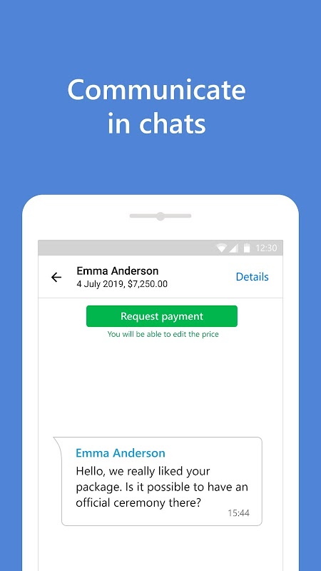 As our wedding planner, you will be instantly notified of any incoming inquiries. You will be able to communicate via the app, customise your services based on the client’s needs and receive bookings securely via the app.