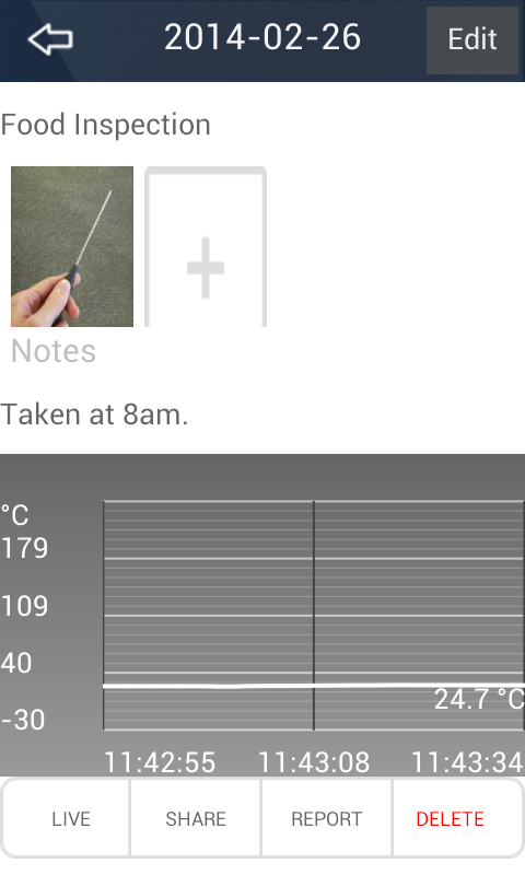 • ضبط مداوم - قابلیت به طور مداوم ضبط قرائت و همچنین برای اضافه کردن یادداشت، گرفتن عکس و رها کردن یک پین بر روی نمودار.