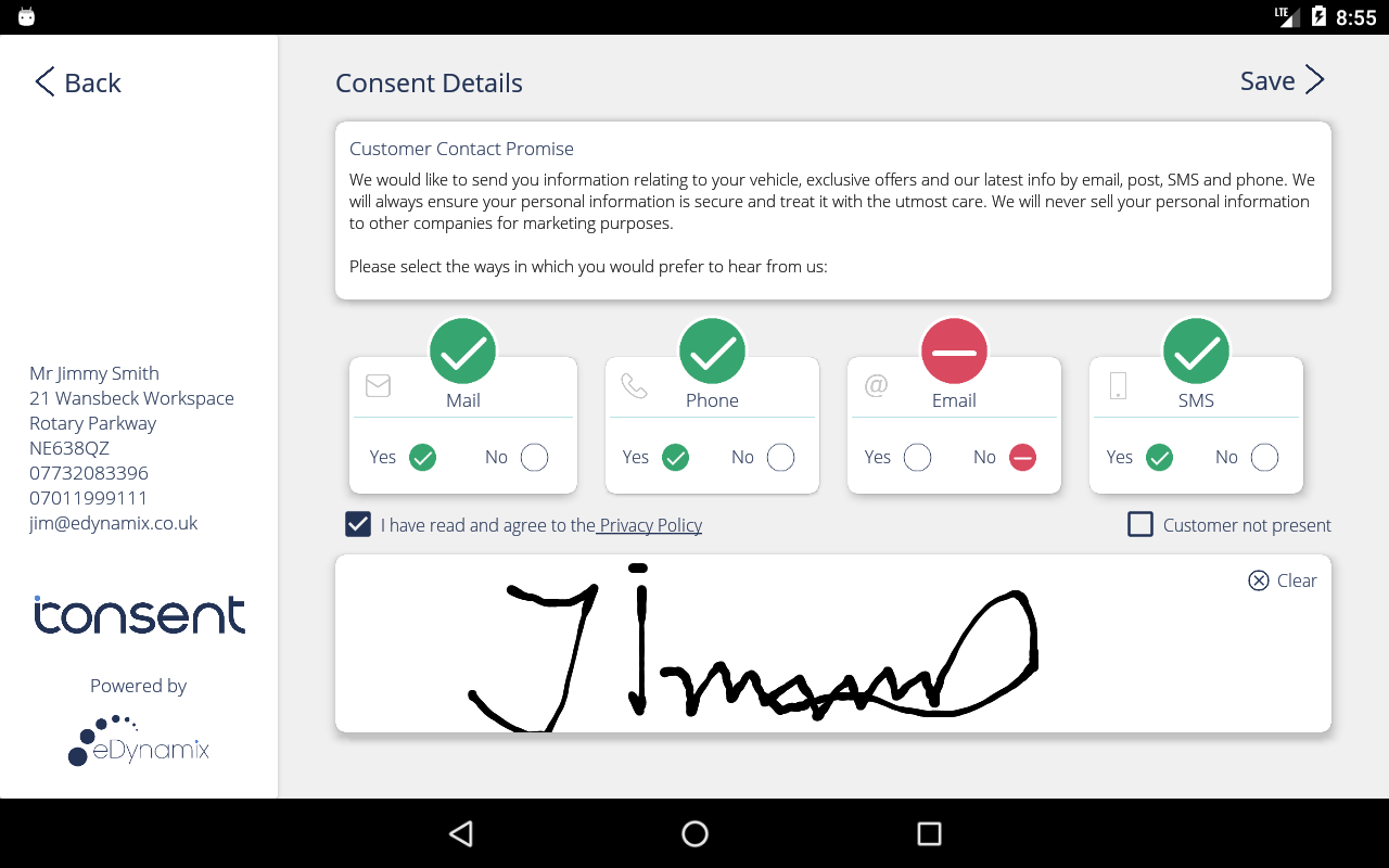 iConsent یک مکانیسم برای گرفتن و ذخیره سازی GDPR رضایت سازگار برای اهداف بازاریابی مستقیم فراهم می کند.