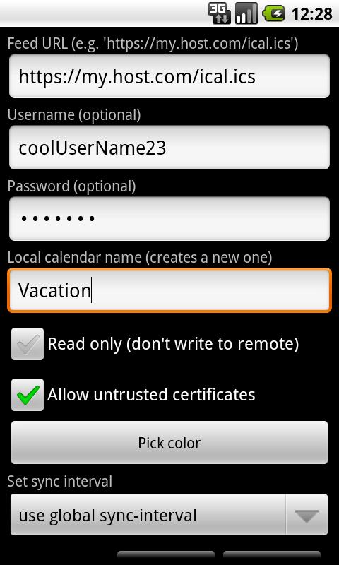 * Sync one or more ICS-files to your Android device.