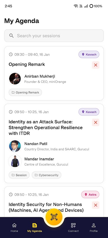 اپلیکیشن اجلاس Identity Shield از miniOrange با فراهم کردن امکان مرور جلسات به صورت بلادرنگ، شناخت سخنرانان، ایجاد دستور کار شخصی، ایجاد ارتباط با اسکن نشانهای یکدیگر و ایجاد شبکه، تجربه شما از کنفرانس را بهبود میبخشد.