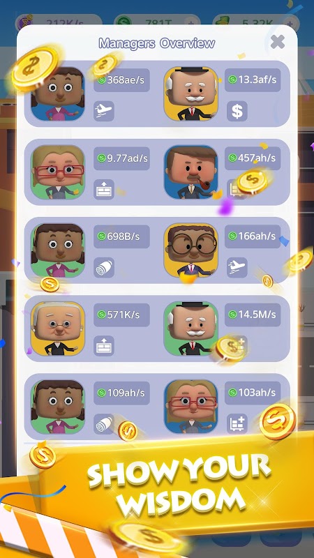 We will begin with a small airport. Use your brain to employ capable managers with different characters. Expand your business in new continents by opening more airlines and transporting more resources. Develop new technologies and build better planes. Your airport will grow into an international one and bring more income to your family. Just get on a plane to go on a vacation and wait for the money to roll into your pocket!