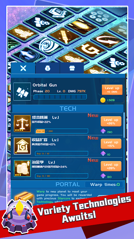 Breakthrough harder stages, warp to new universe, and obtain all the lost technology!
