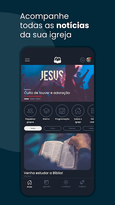 منابع موجود در برنامه: اخبار، دستور کار کلیسا، رویدادها، مطالب، پروژه ها، انتقال زنده و ماژول آموزشی.