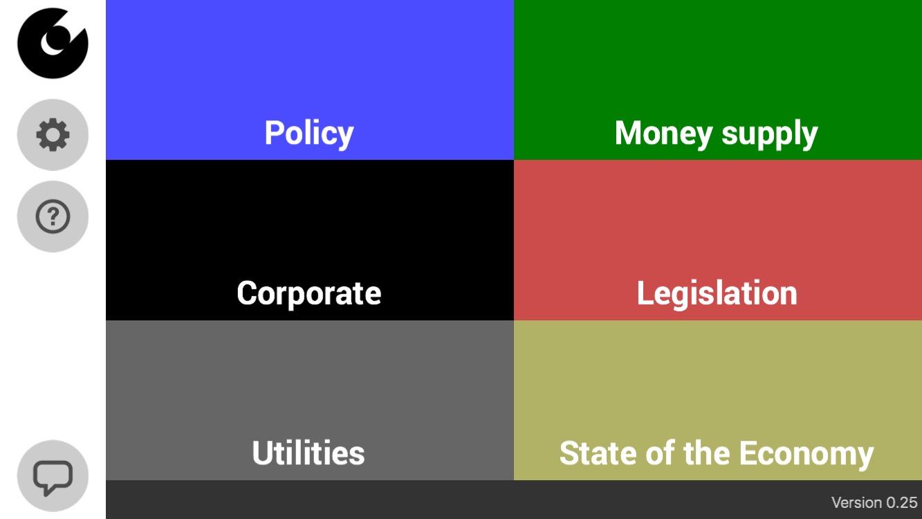To play the game, each role adjusts a few parameters. When all the roles are finished, view the 'State of the Economy' to see the result.