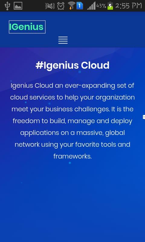 iGenius Cloud یک مجموعه خدمات ابری همیشه در حال گسترش است تا به سازمان شما کمک کند تا چالش های کسب و کار شما را برآورده سازد. این آزادی برای ساخت، مدیریت و اعمال برنامه ها در یک شبکه عظیم جهانی با استفاده از ابزار و فریم های مورد علاقه شماست.