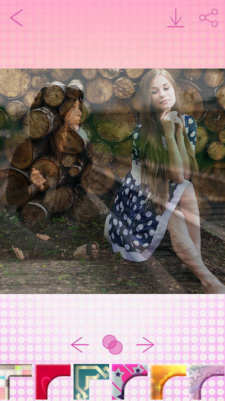 Make cute picblend and a double exposure effect right now and rule the social networks! "Merge two pics" into one photo and easily change transparency of blend modes. No app for Android ™ phones offers such a good quality photo montage as this amazing "camera blender". Let us help you create your own cute camera effects by overlaying your pictures over photos. Don't forget that you can also choose from a number of sweet and girly pic frames that will match with every photo montage you make. Select the color, pattern and the shape of your favorite digital frame for photos and show your friends that "overlapping images" has never been more easier. Make sure to download Image Blender Camera Effects for free and keep up with the latest trends in professional photography!