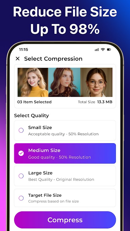 این برنامه که با فناوری پیشرفته پردازش تصویر در سال 2026 ساخته شده است، به عنوان یک برنامه کاهش حجم عکس و کاهش حجم فایل برای آپلود سریع، اشتراکگذاری آسان و صرفهجویی در فضای ذخیرهسازی عالی است.