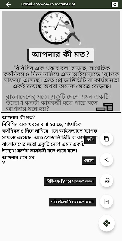 - ذخیره تصویر Bangla به اسناد متنی در ذخیره سازی و تبدیل سند سند در فایل pdf و متن.