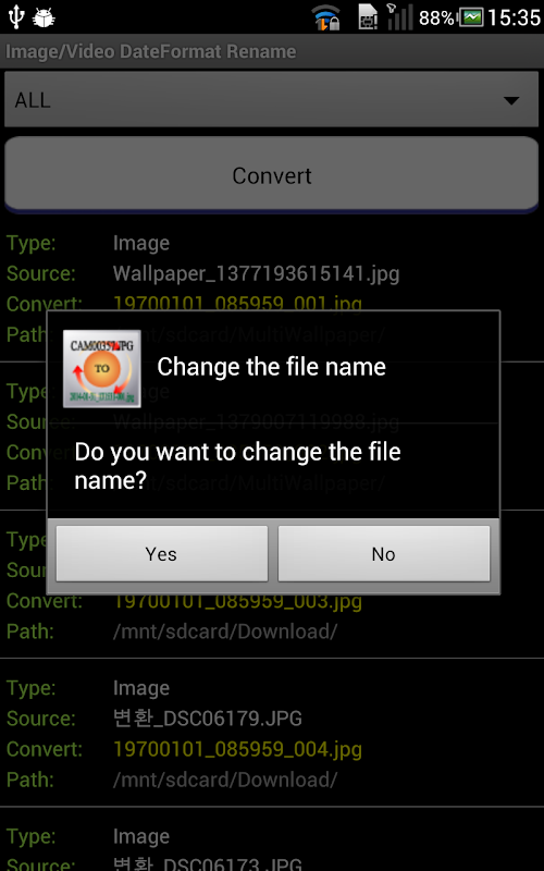 * عکس، تصویر، عکس، ویدئو (AVI، MP4، 3GP ...) تاریخ / زمان فرمت نام فایل را تغییر دهید.