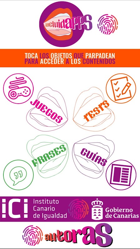 در محیط آموزشی (معلمان ، دانش آموزان ، خانواده ها) برای کار با استفاده از زبان غیر جنسی در کلاس ، به همراه یک راهنمای آموزشی برای معلمان استفاده می شود و به استفاده از این ابزار متمرکز می شود. INCLUDEDAPPS مجموعه ای از بازی ها (Truth or Falsedapp ، Normalimeter ، Guess Guessing ، Nombradapps ، Visibilizadapps و Enlazadapps) با طراحی بازیگوش ، جوان و جذاب است که با استفاده از آنها می توانید با استفاده از زبان خود یک تور را انجام دهید ، به شیوه ای سرگرم کننده و سرگرم کننده فراگیر و اصلاح این کار برای اینکه بتوانید از آن به شکلی استفاده کنید که شامل همه افراد شود. از منوی INCLUIDAPPS همچنین می توانیم به همراه بازی ها ، آزمون های دانش آموزان و معلمان ، عبارات به عنوان منبع تدریس و راهنماهای (پنج راهنما) که پروژه را با محتوا تغذیه می کنند ، دسترسی داشته باشیم.