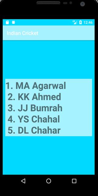 این برنامه با توجه به موقعیت آنها نام Cricketer هند را نشان می دهد