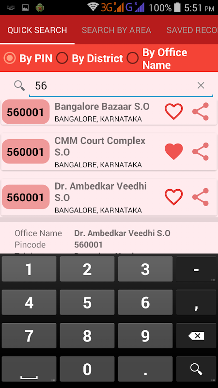 - دفتر ارسال و یا pincodes را می توان فقط با دادن یک کامل و یا بخشی از شماره پین، منطقه و یا نام دفتر جستجو.