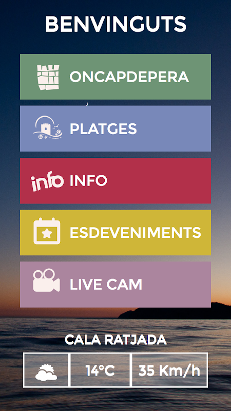 Tota la informació turística de Capdepera i les seves cales en una sola app. Visites turístiques d'interès, guia de serveis, informació en temps real de l'estat de les platges, incloses càmeres web. A més d'una agenda amb les activitats més rellevants. I tota una selecció de l'oferta complementària per gaudir d'una estada única. Cala Ratjada. Cala Mesquida. Font de sa Cala. Canyamel.