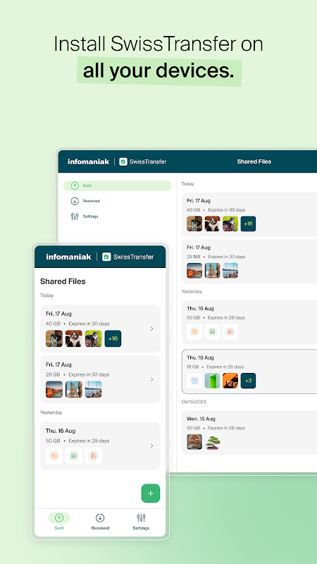 برنامه رسمی اندروید SwissTransfer.com که توسط Infomaniak توسعه یافته است را دانلود کنید.