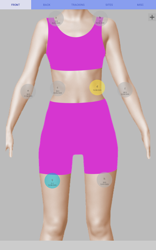 در کنار هر ناحیه ای که برای تزریق اختصاص داده شده است، تعداد روزهایی که از آخرین تزریق انجام شده است یا تعداد روزهای باقی مانده تا تزریق بعدی را خواهید یافت.