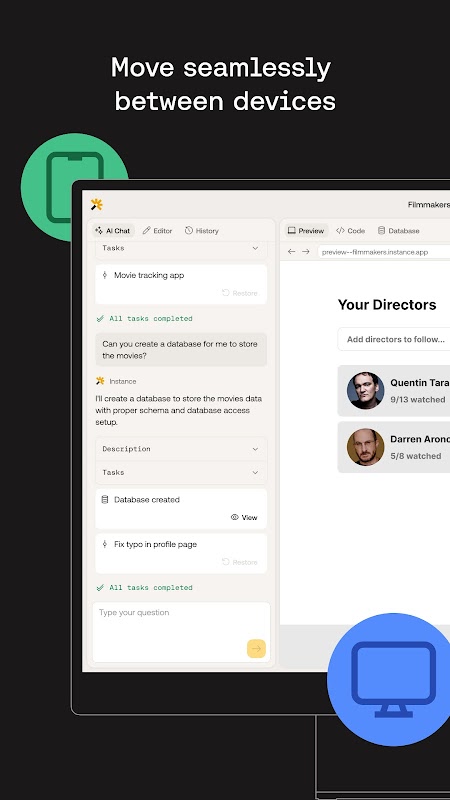 • Cross-platform: سازنده برنامه هوش مصنوعی Instance برای کدنویسی vibe، برنامههای پاسخگو را ایجاد میکند که در همه دستگاهها کار میکنند.