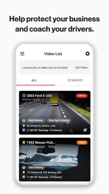 لطفاً توجه داشته باشید: این برنامه به اشتراک ویدیوی یکپارچه Verizon Connect (Reveal/Fleet)، Dashcam و واحد ردیابی خودرو نیاز دارد.