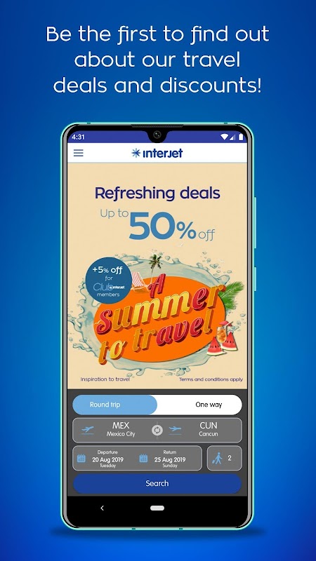 Discover the more than 50 national and international destinations Interjet has for you and book your flight from the comfort of your smartphone, fly to your favorite destination easier and faster!