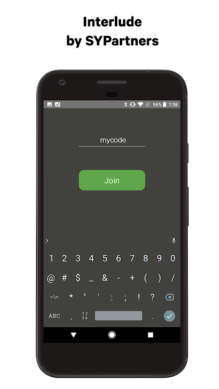 Interlude, by SYPartners, is an application that allows participants to receive content throughout an event. By entering a participant ID into the application, users will be joined to a session that will allow them to read, interact, and respond.