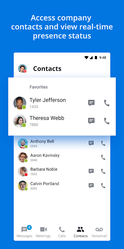 Unite Mobile App تلفن همراه شما را به یک ابزار همکاری ضروری تبدیل میکند و کار تیمی در حال حرکت را آسانتر از همیشه میکند. تماس بگیرید و دریافت کنید، ببینید چه کسی در دسترس است، با همکاران گپ بزنید، جلسات را میزبانی کنید یا به آن بپیوندید، و پست های صوتی را از یک برنامه مدیریت کنید - در هر زمان و هر مکان.