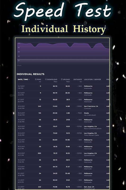 Real-time graphs show connection consistency. Track past tests with detailed reporting testing Internet speeds, and it’s trusted daily by professionals throughout the industry! Mobile data speed meter, WiFi data speed meter, Internet Speed Master.
