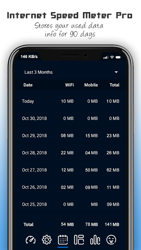 - Separate stats for Mobile network and WiFi network.