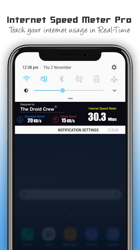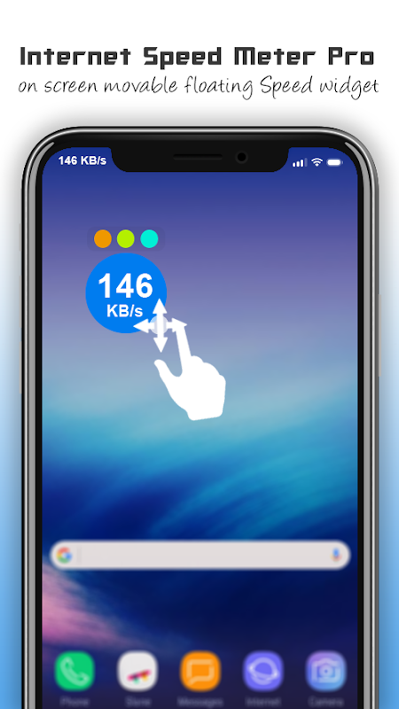 Internet Speed Meter Pro - Monitor Live Internet Speed displays your internet speed in status bar and shows the real-time speed of the internet and amount of data used in notification panel and in Floating Screen Widget. This helps you to monitor network connection anytime while using your device.