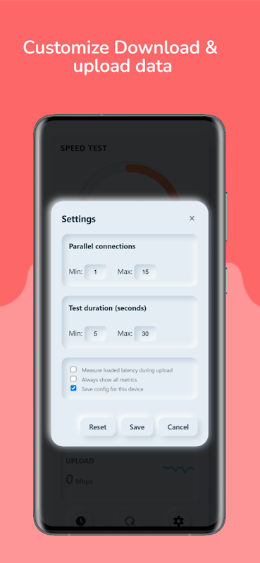 ✅ تست های قابل تنظیم – برای کنترل بیشتر، اندازه داده های دانلود/آپلود خود را انتخاب کنید.