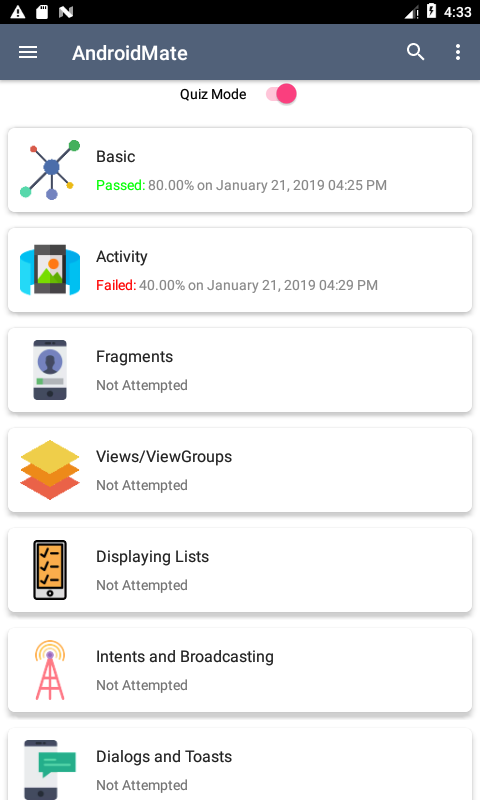 بنابراین برنامه حالت راهنمایی را فراهم می کند که در آن نکات کلیدی برای هر سوال فهرست شده است که به احتمال زیاد در مصاحبه Android Developer شما تست شده است.