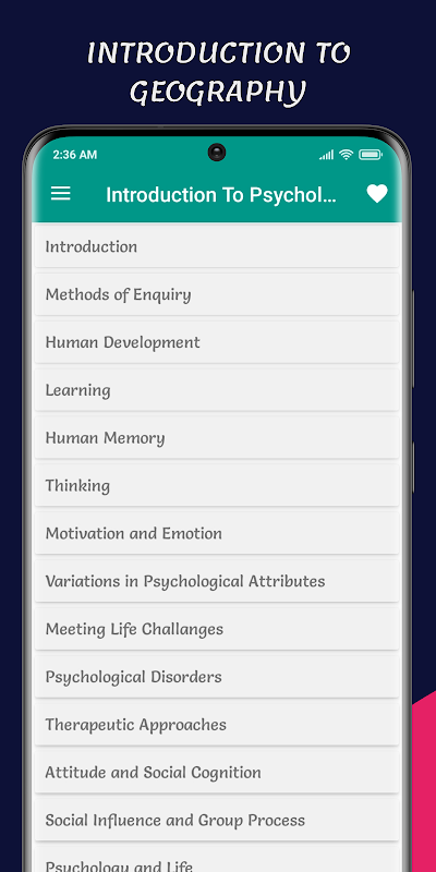 مقدمه ای بر برنامه روانشناسی شما فراهم می کند اطلاعات مفید در مورد روانشناسی. این برنامه برای دانش آموزان، معلمان و خوانندگان عمومی که مایل به یادگیری روانشناسی طراحی شده است.