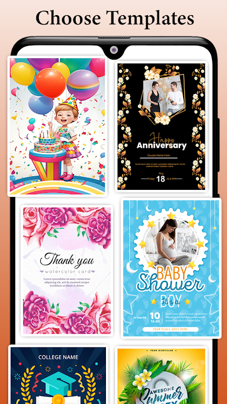 ⭐ دسته بندی را انتخاب کنید که به بهترین وجه مناسب رویداد شما باشد، چه دعوتنامه مهمانی، کارت تولد، دعوت نامه عروسی، یا دعوت نامه حمام نوزاد.