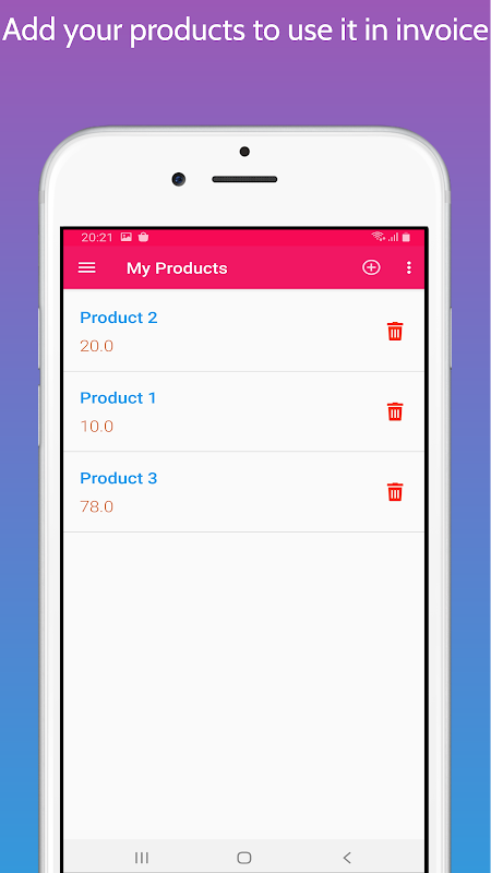 * آسان برای افزودن اطلاعات محصول یا خدمات به فاکتور.